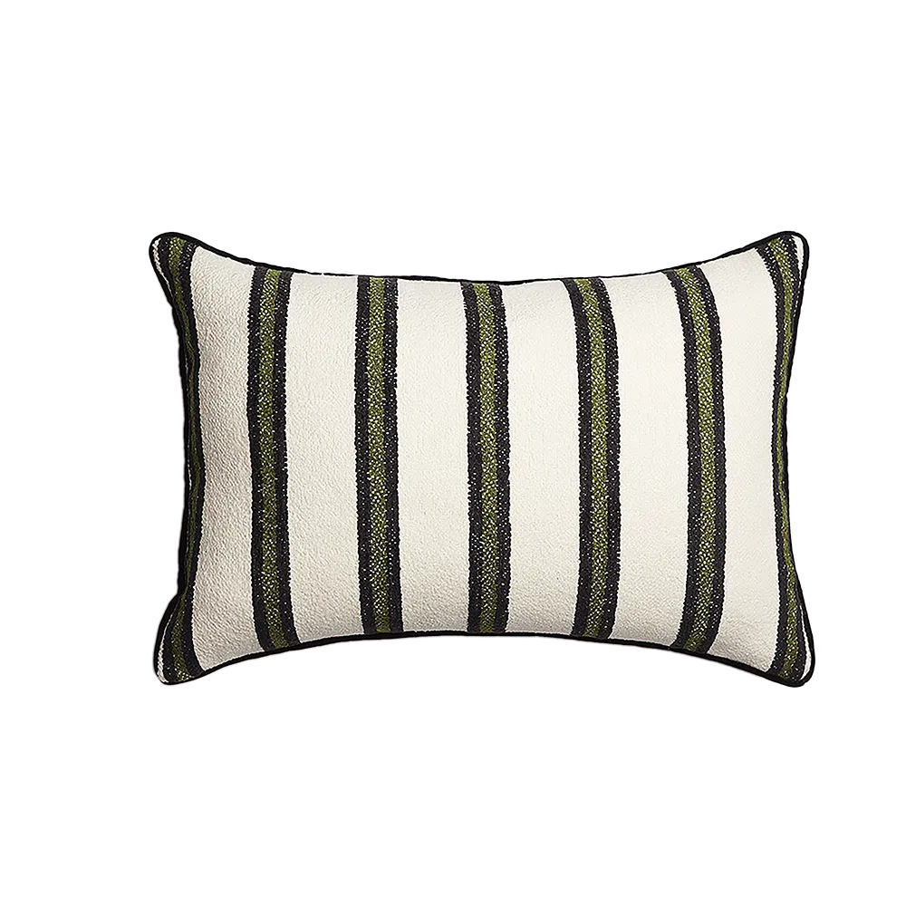Rayas pronunciadas con relieve y de un tacto sublime. Acabado con cordon de terciopelo, trasera de lino y cremallera invisible.Disponible en dos tamaños. Relleno incluido de algodón de popelín y pequeñas plumas procedentes del norte de España.
