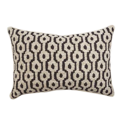 Un diseño abstracto formado por un sofisticado hilo bicolor. Acabado con cordon de terciopelo, trasera de lino y cremallera invisible. Relleno incluido de algodón de popelín y pequeñas plumas procedentes del norte de España.